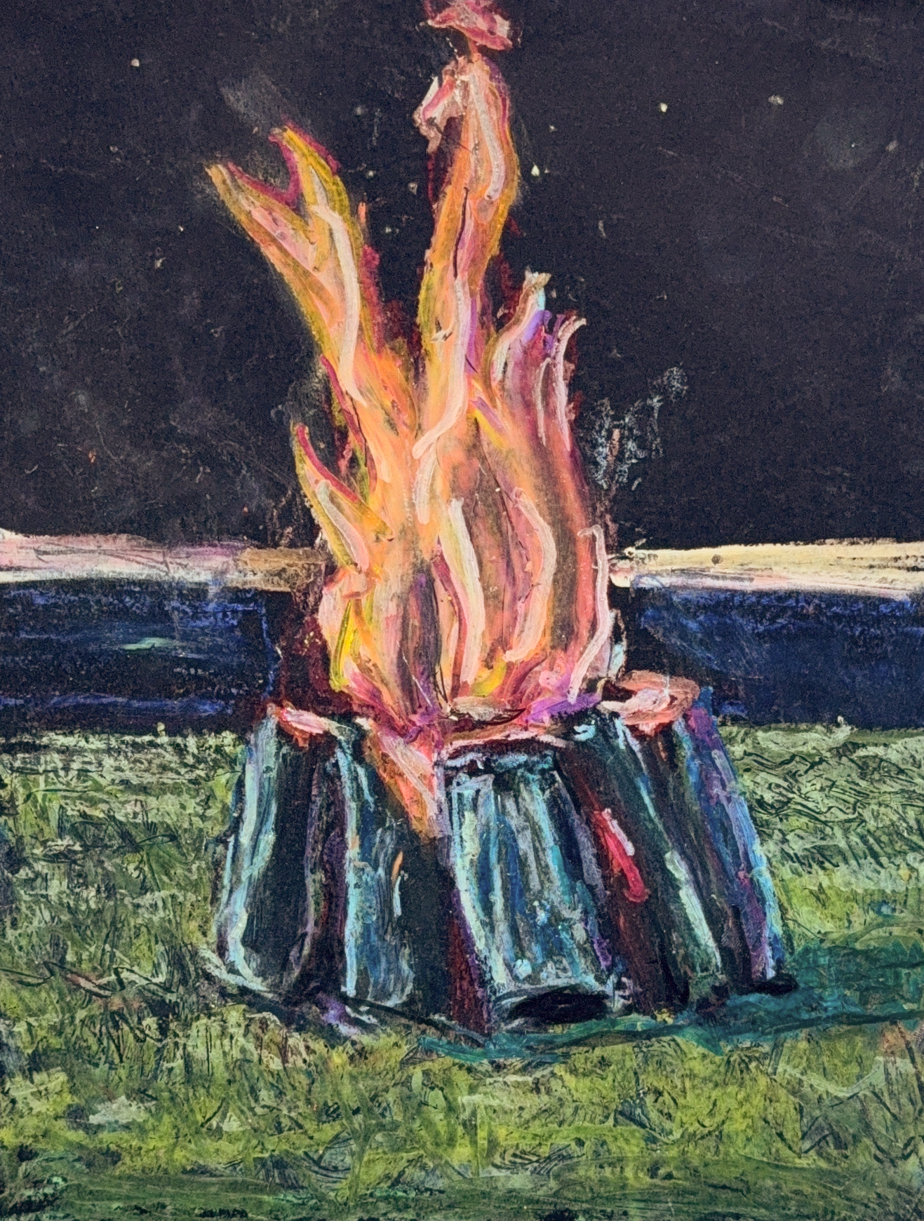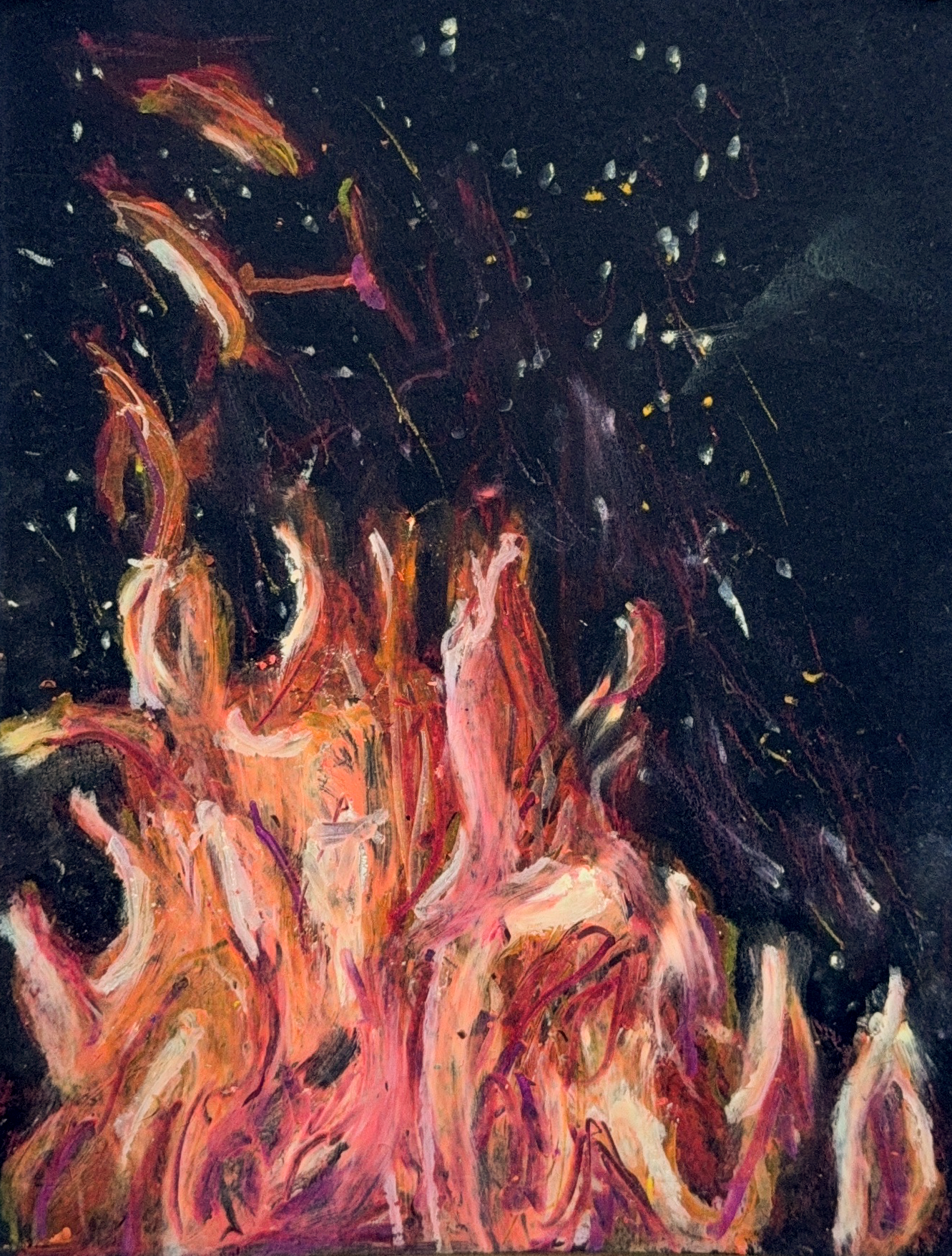 A study on fire and mood. Black paper demands that you earn every bit of light, and fire is light in its most unpredictable form. This piece is as much about the feeling of standing near a fire at night as it is about capturing one.