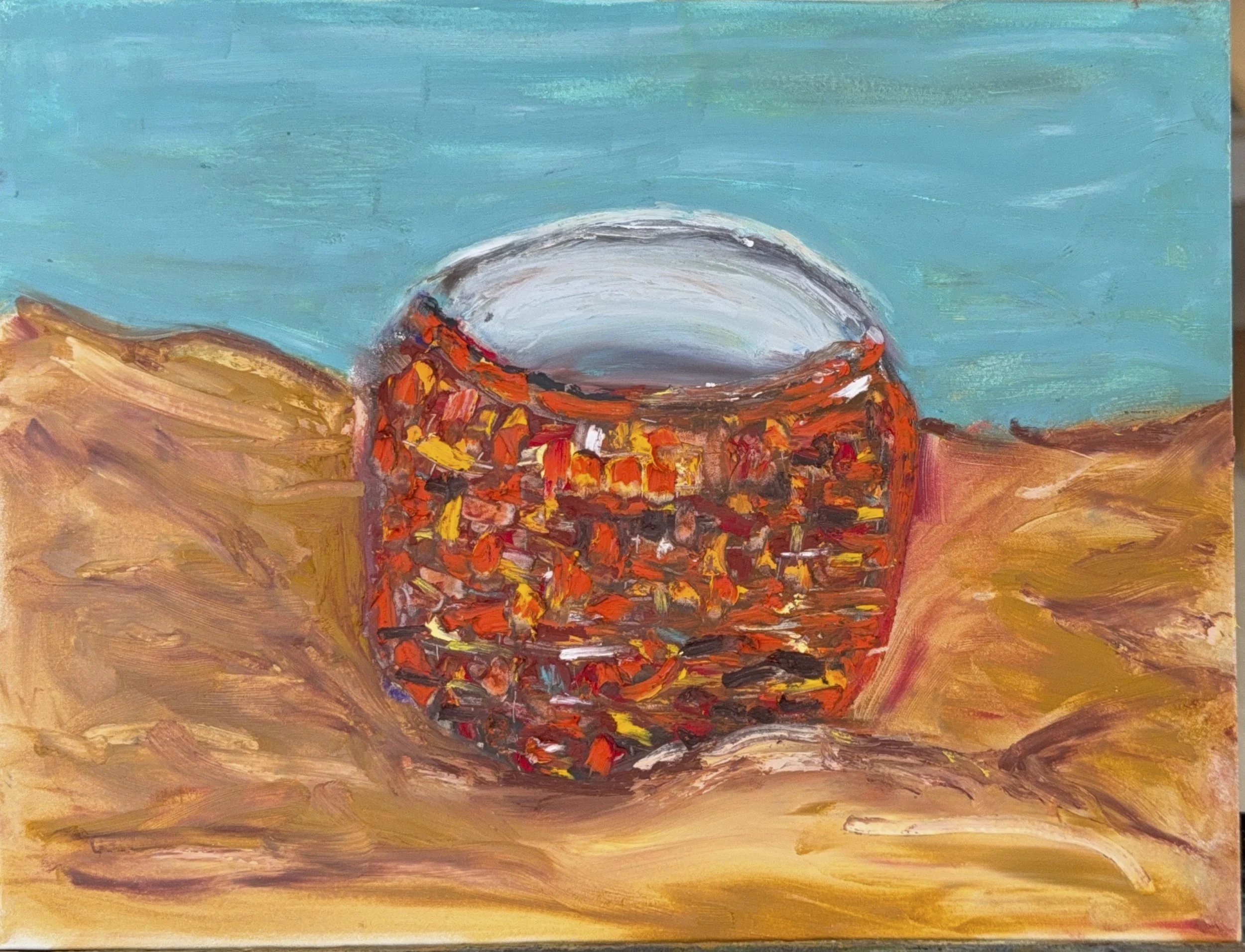 Oil pastel is the right medium for this kind of memory. You can't paint with it so much as press it in. That tactile resistance is exactly how sense-memory works. You don't think your way back to a place. You feel your way there.