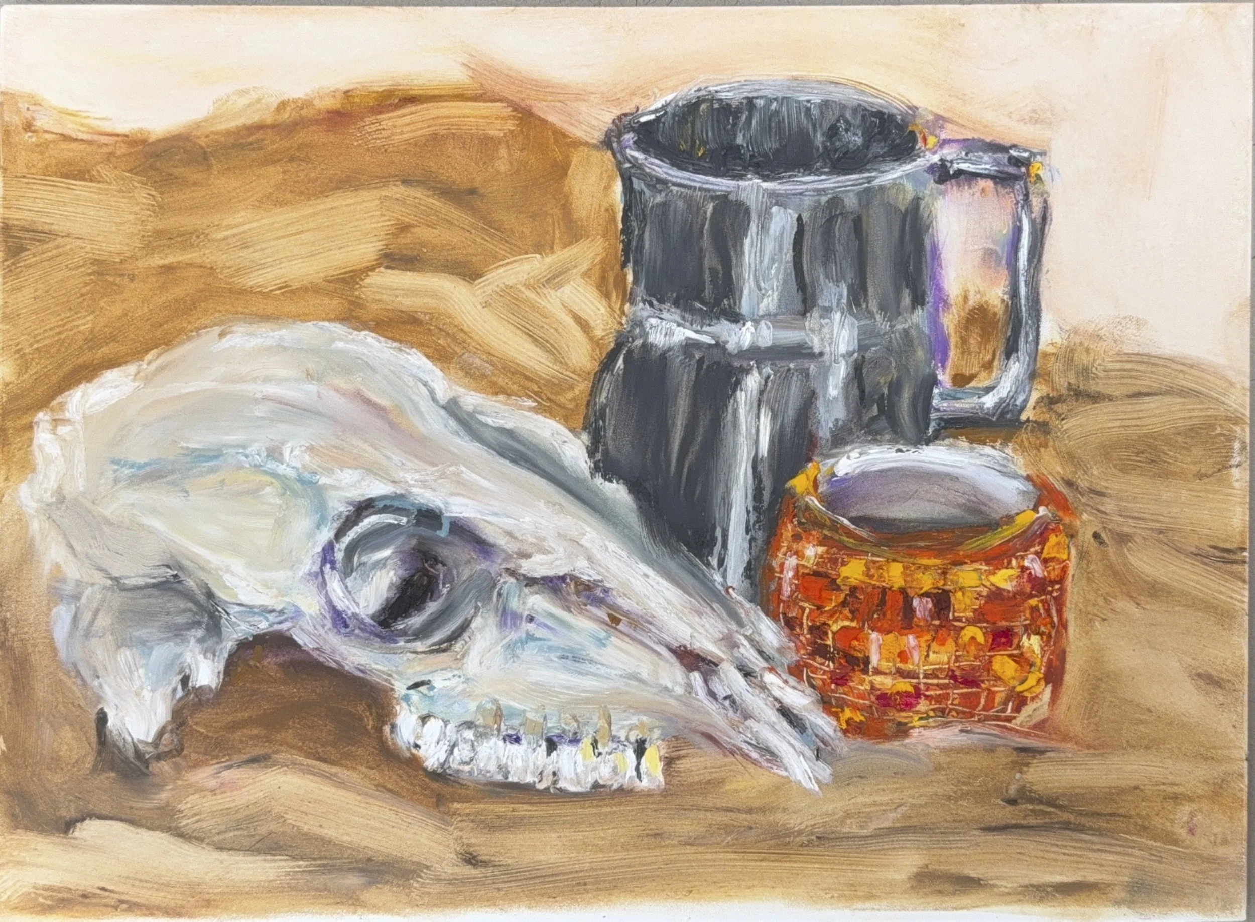 A skull, a mug, a vessel that refuses to be ignored. This still life session carries the quiet weight of the vanitas tradition. What endures? What catches the light?